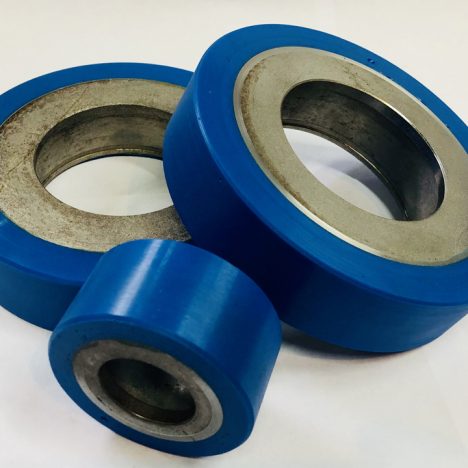 Se efectúan ruedas completas o solo el revestido en cauchos y elastómeros de cualquier tipo de elemento rodante en variadas durezas, como también pueden fabricarse cubiertas macizas. Para uso en carros, zorras, apiladoras, plataformas elevadoras, remolques y autoelevadores.